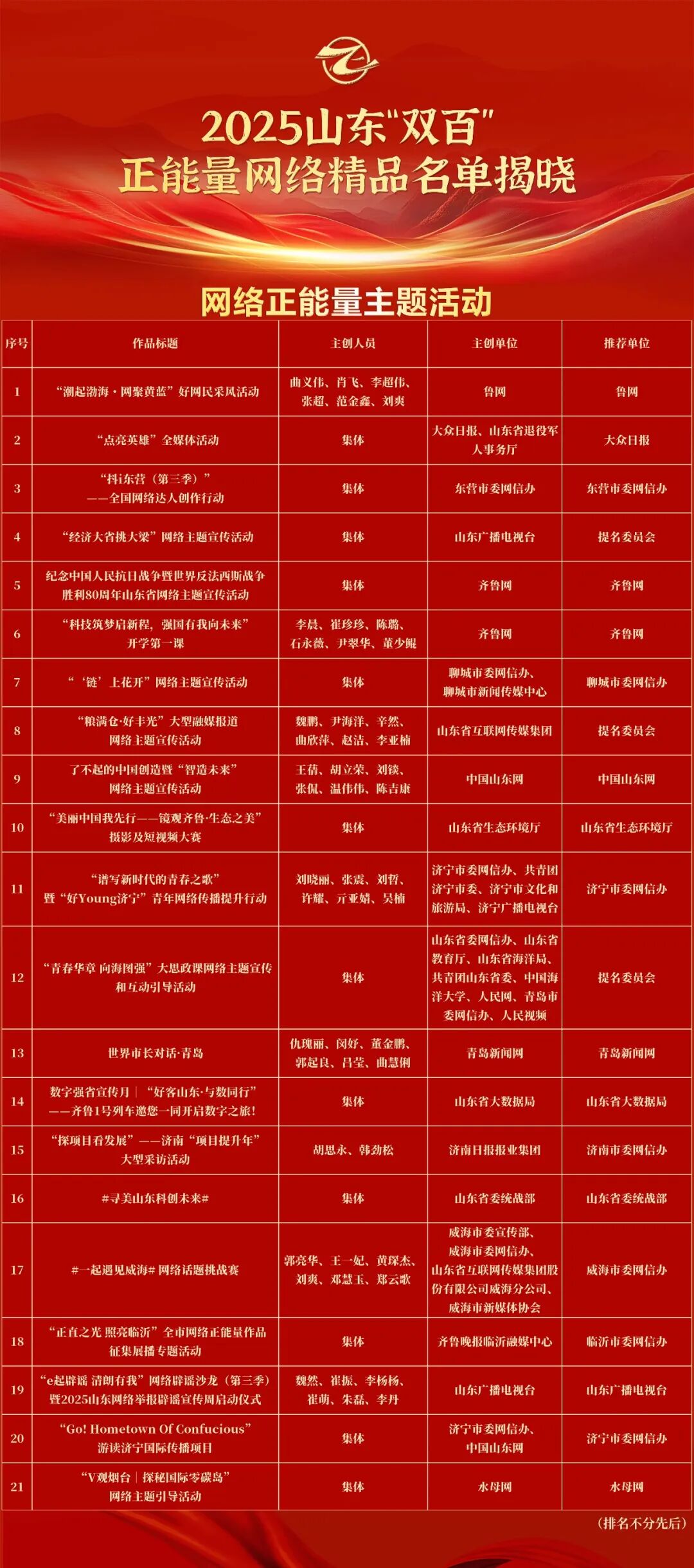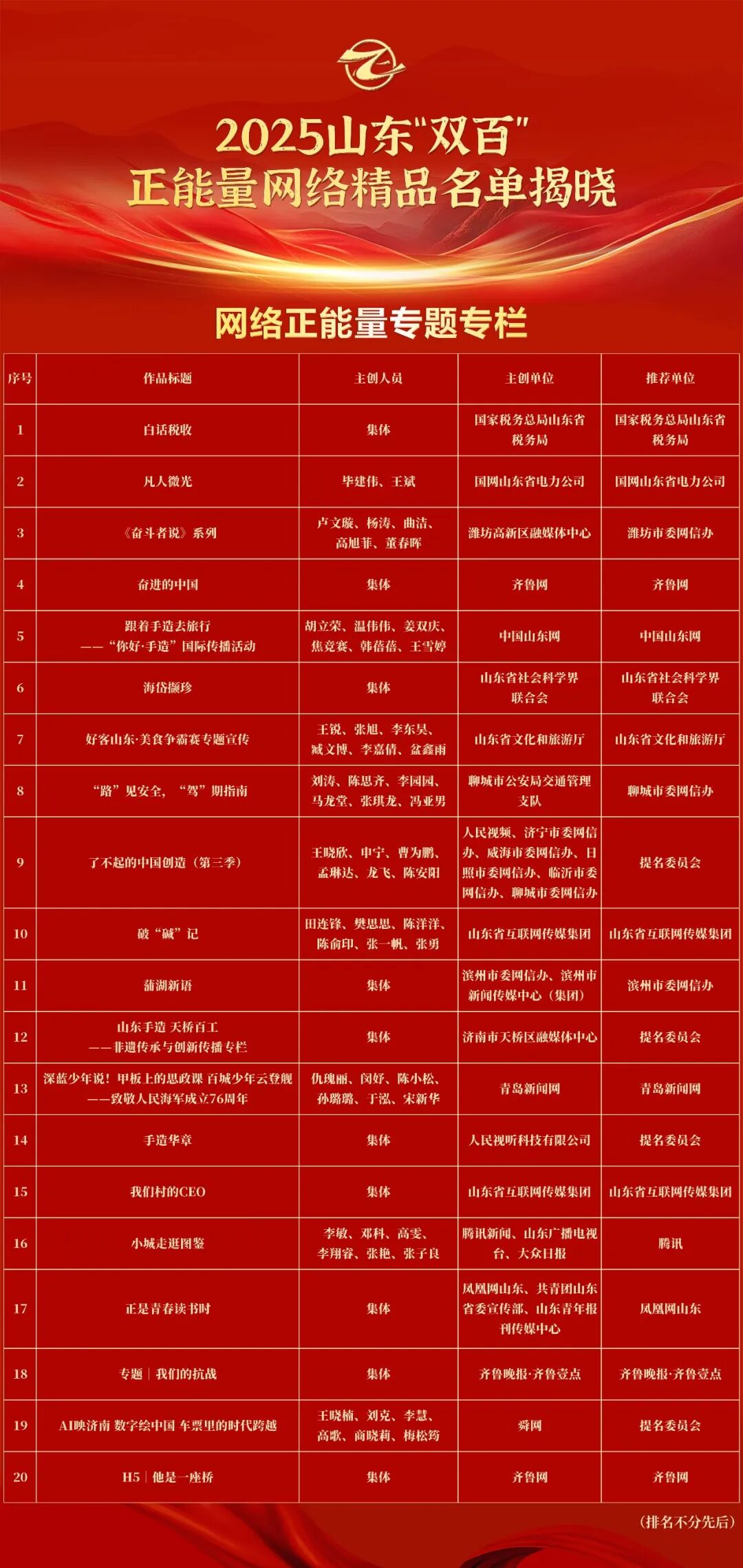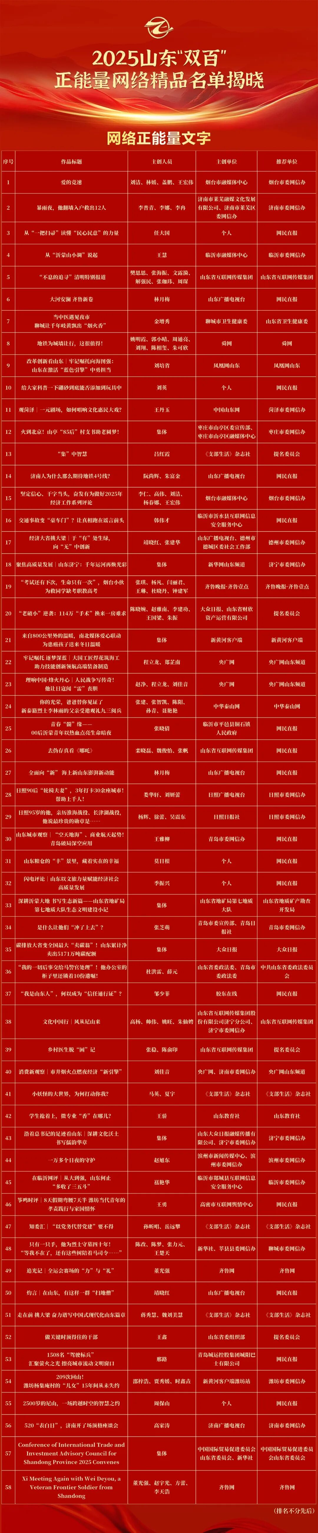 由山东省委网信办主办的2025山东“双百”正能量网络精品征集展播活动今天揭晓结果,经过评委线上打分和线下评审以及结果公示,200件网络精品脱颖而出。其中,由《支部生活》杂志社(《走向世界》杂志社)创作的《‘集中’智慧》《小妖怪的世界,为何打动你我?》《知委汇|“以党务代替党建”要不得》《走在前 挑大梁 奋力谱写中国式现代化山东篇章》等4件作品上榜。